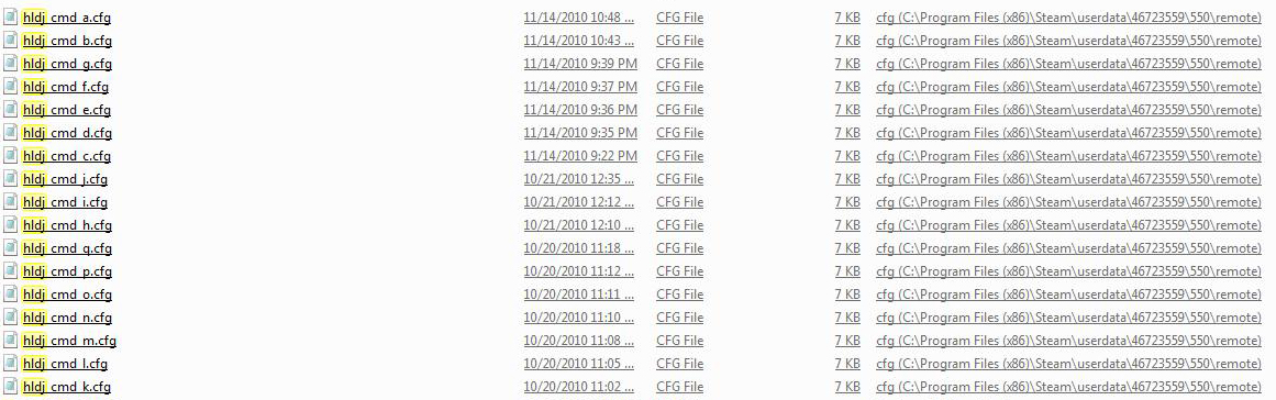 I did delete all the hldj_ cfg files (as mentioned in another post), but I noticed that when I start Steam, the files are recreated (with the old creation dates - seems strange to me), so it would seem that something is happening in regards to HLDJ and Steam on my computer (or the Steam servers and my computer??). The recreated hldj cfg files are shown in the attached image: . I also tried the suggestions given in the original post, and reply to my comment there, all to no avail.