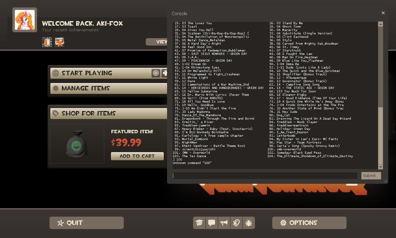 I've been using HLDJ for quite a while now, and recently imported and converted correctly around 80 or so full-length songs into the folder I use for HLDJ, because a clan I am a member of is holding a party, and I am DJ-ing. However, now that Ive launched HLDJ, commands set for HLDJ itself work fine, such as la, etc. However, using commands such a 1, 2, or 3 to select a song provides an "Unknown Error" output in the console? I would appreciate your help.